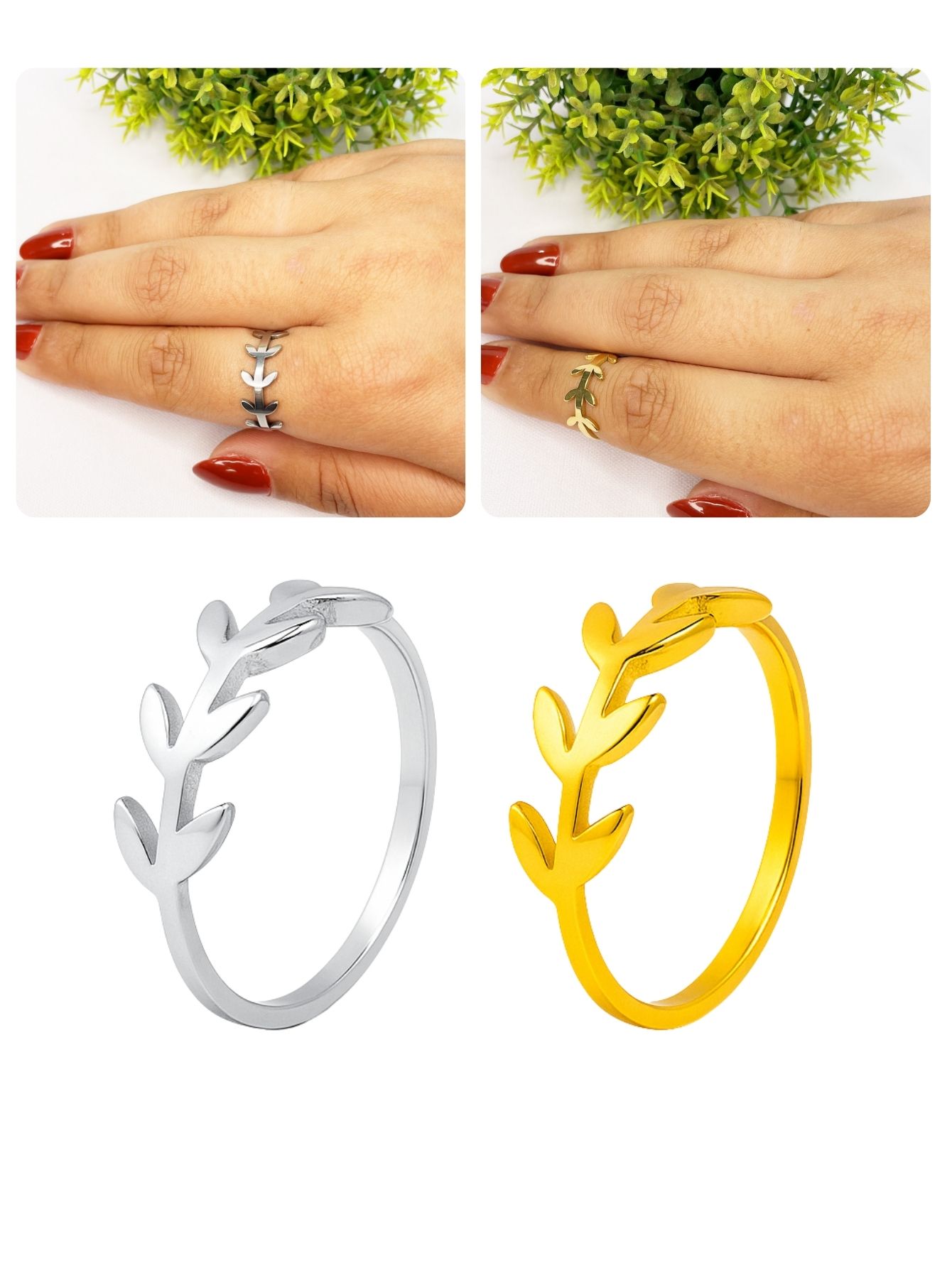 Anel Falange Feminino Aro Ramo Folha Delicado Minimalista Moderno Prata Dourado Aço Inox Premium