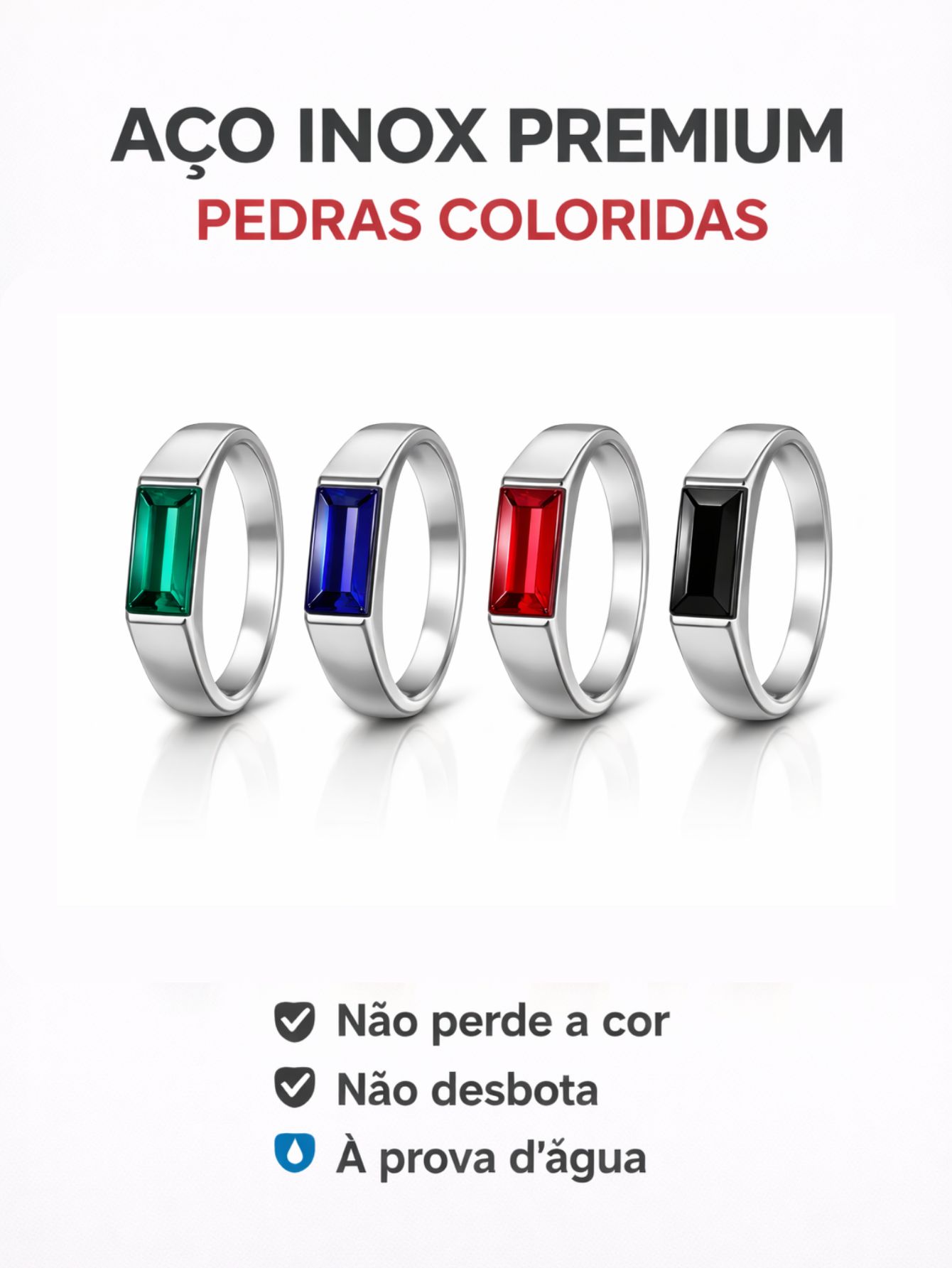 Anel Flat Pedra Preto Verde Azul Vermelho Aço Inox Prata Dedeira Onix Quadrada Não Escurece