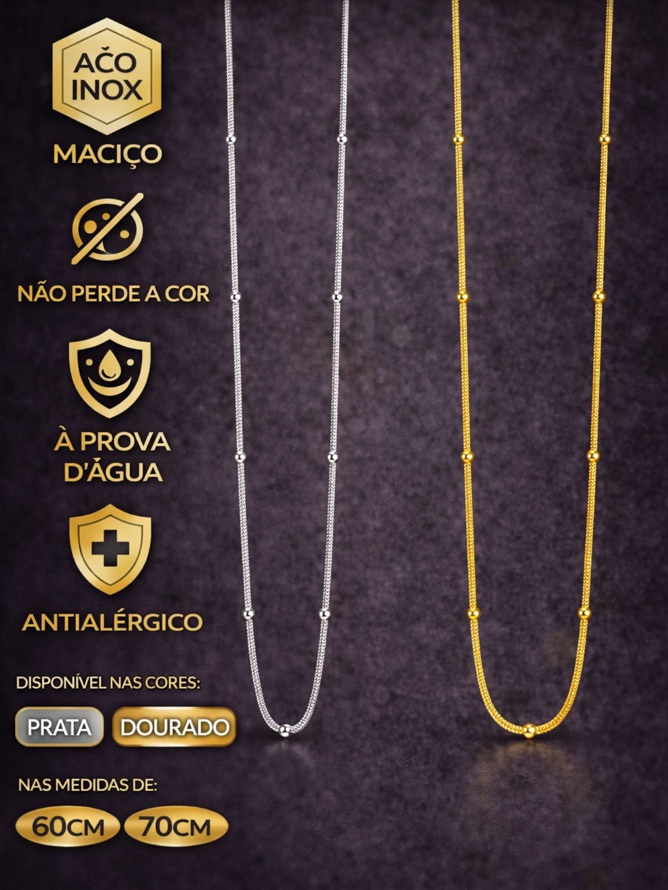 Colar Cordão 60\70cm Feminino Prata Dourado Bolinha Fita Entrelaçado Aço Inox Não Escurece