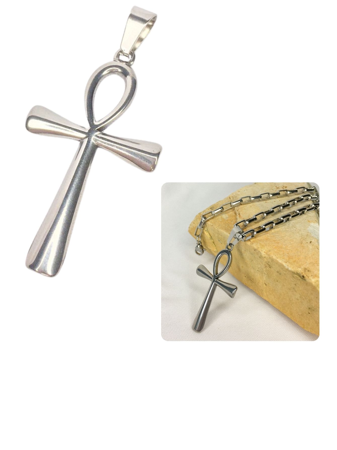 Pingente masculino em aço Modelo Cruz Egípcia ANKH a prova d´água , é perfeito para levar consigo a Esperança e Fé para o dia a dia;