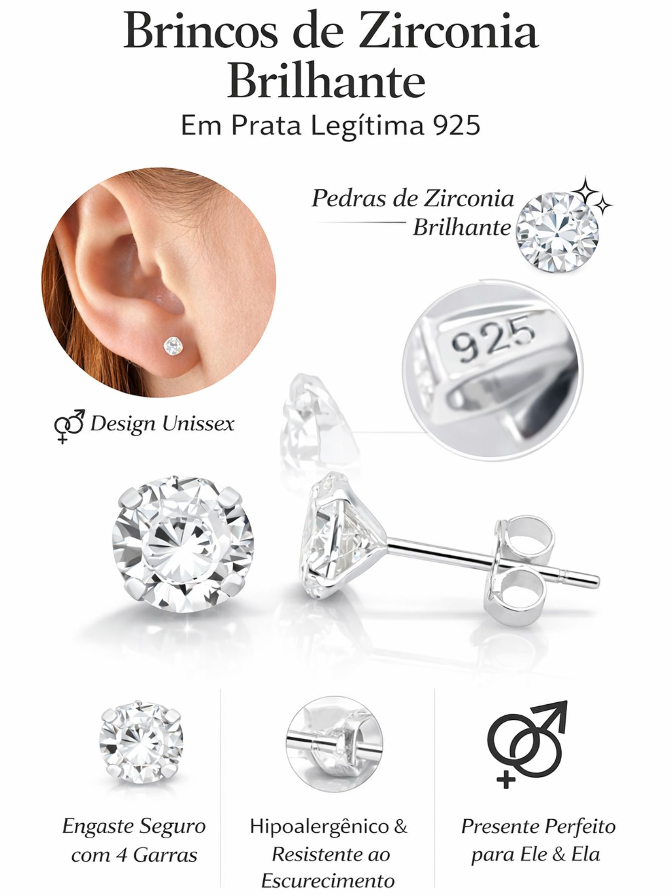 Brinco ponto de luz é uma ótima opção para presentear um amigo ou namorado. Brinco em Prata Legítima Maciça 925, não descasca e não enferruja, podendo usar diariamente. Esse modelo ponto de luz proporciona brilho durante todo tempo, sua pedra de Zircônia leva a um brilho intenso.