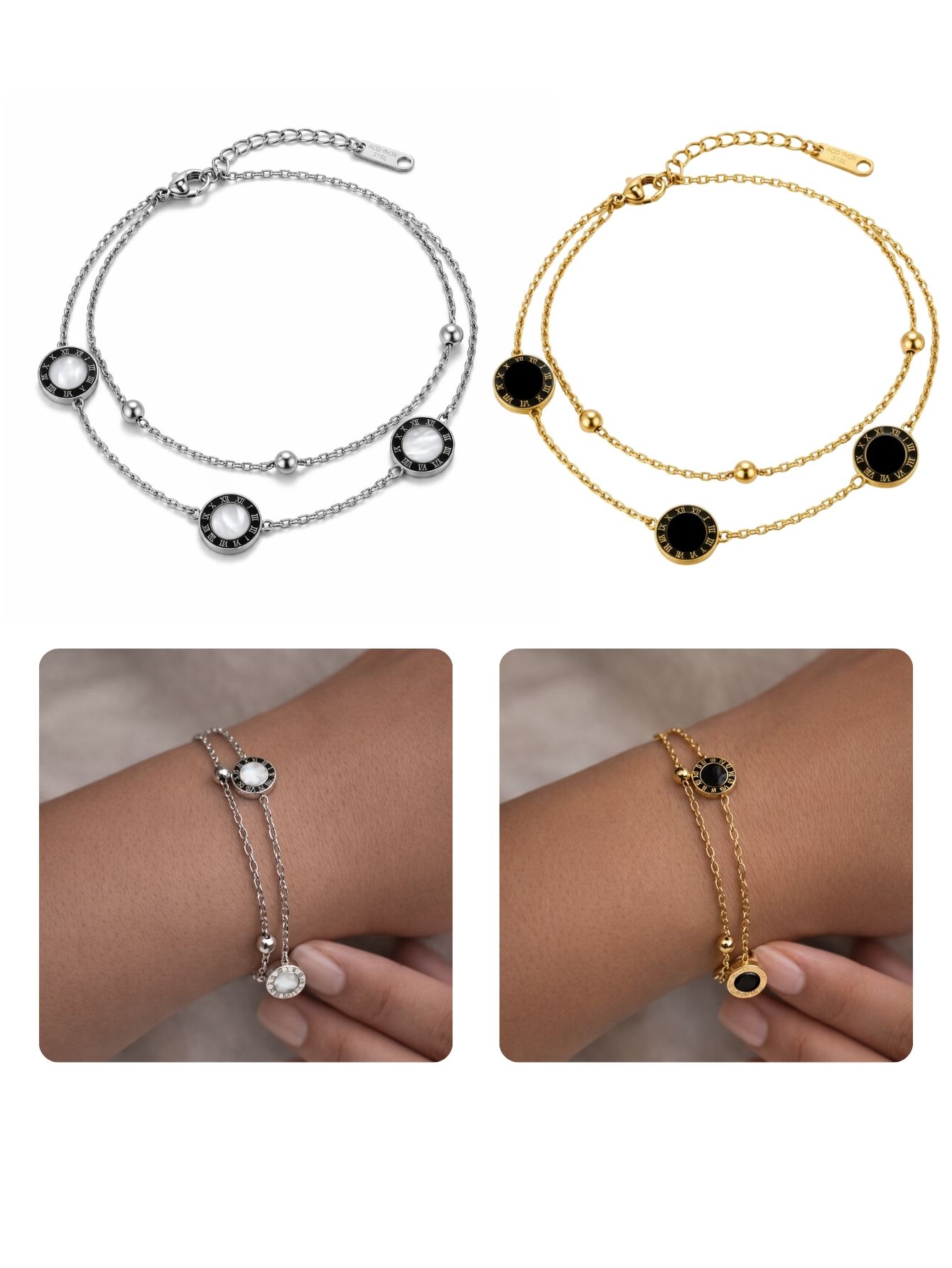 Pulseira modelo 2 fios feminina em aço inox Dourada e Prata antialérgico a prova D'água. Perfeito para pessoas de personalidade que amam estar na moda.